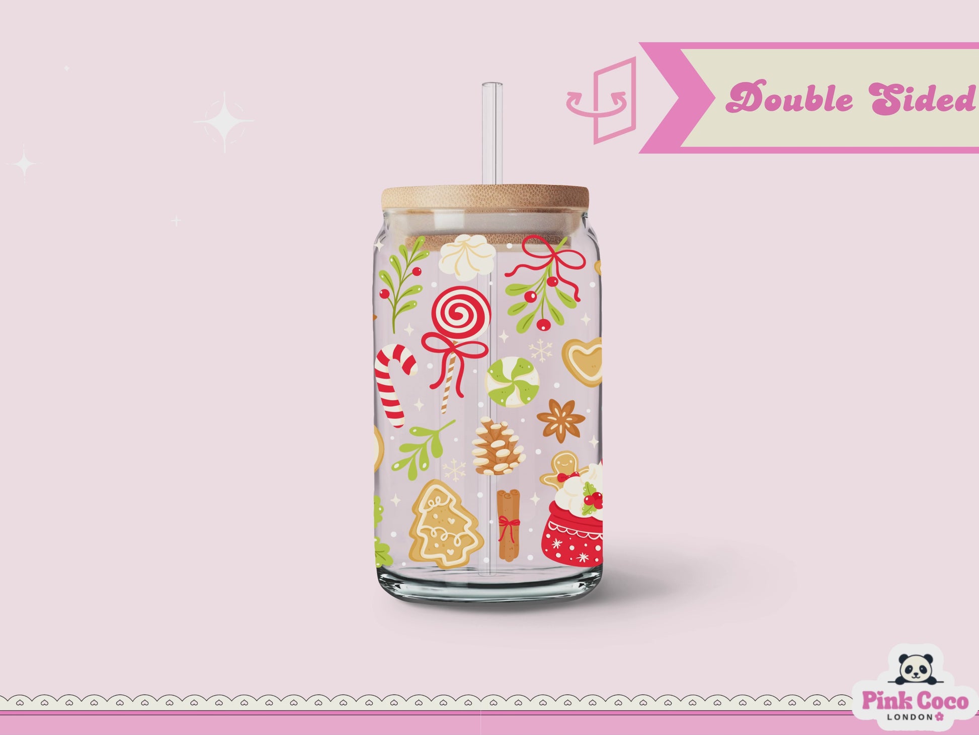 16oz Libbey Glass Can| UV DTF Double Sided| Christmas 2