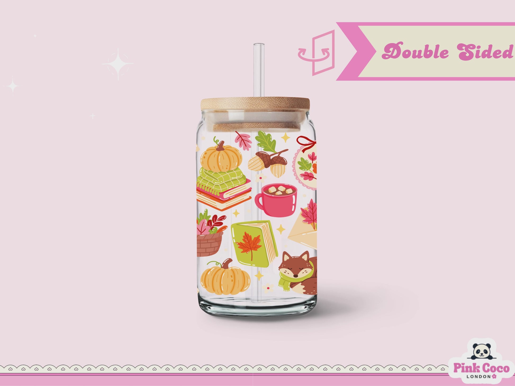 16oz Libbey Glass Can| UV DTF Double Sided| Cozy Fall
