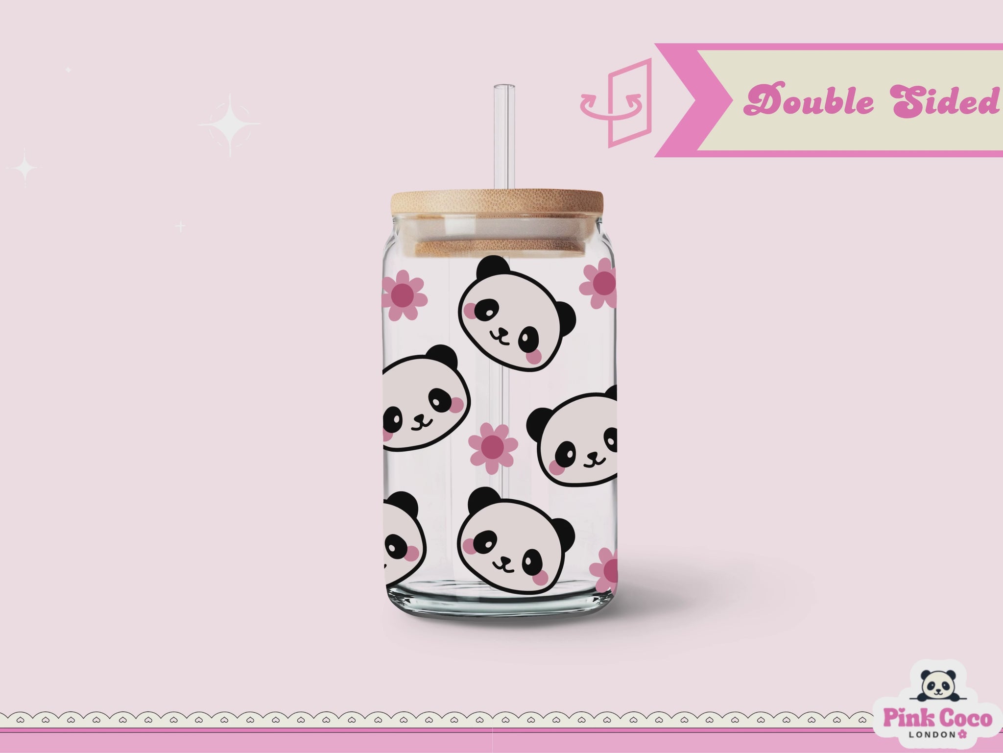16oz Libbey Glass Can| UV DTF Double Sided| Cute Panda and Flower