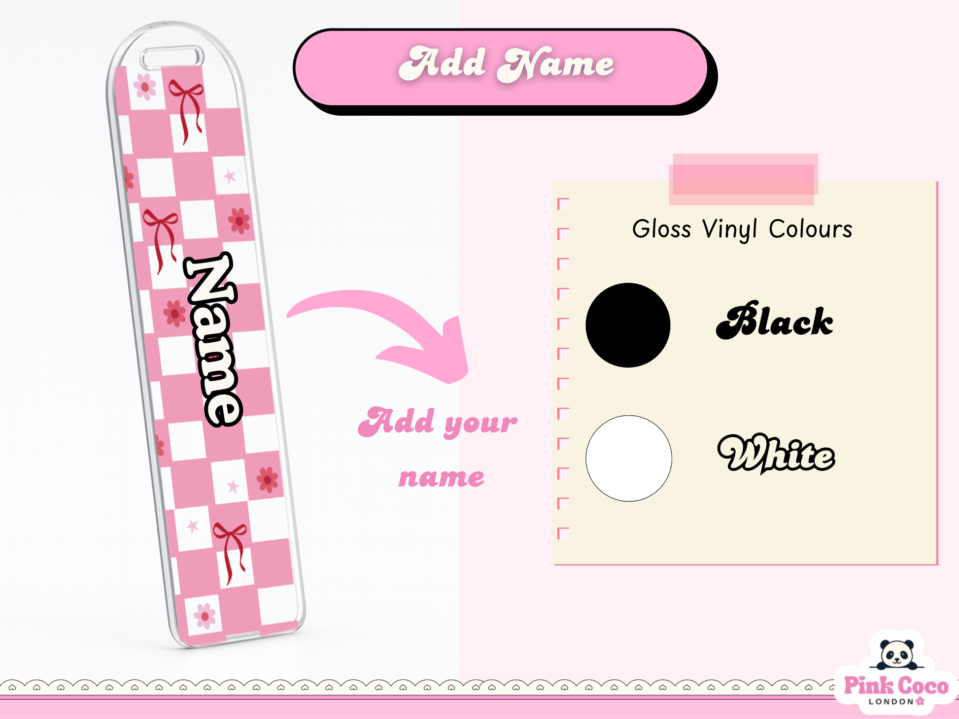 This double sided acrylic bookmark is designed for readers who love a cute touch in their books. It is glossy, sturdy, and available in two colours. You can also add a name to make it personal.